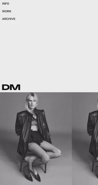 The typographic identity is built around a wide, sans-serif logotype that can be shortened to DM in certain uses. The website works around a split-screen grid showcasing recent work in a clean and understated interface. We built a searchable archive that offers visitors the chance to dig further into DM's prolific back catalogue of shows, editorial and advertising.