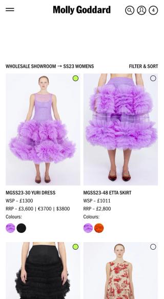 An online B2B wholesale platform for fashion designer Molly Goddard. A tool that can be used by the sales team in the physical showroom and buyers across the world.
