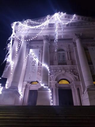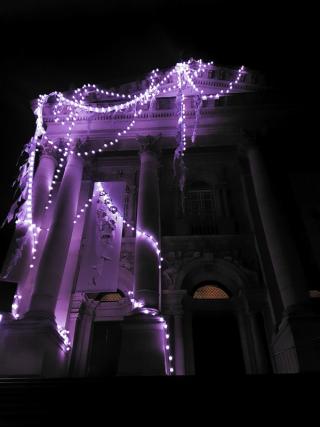 The grand entrance of Tate Britain was turned into a marooned temple for the 2019 winter commission. Appearing with tattered banners and tangled lights, while sculptural objects cascaded down the steps from the shuttered central door, surrounded by an atmospheric soundscape of rain, thunder, birds and insects.